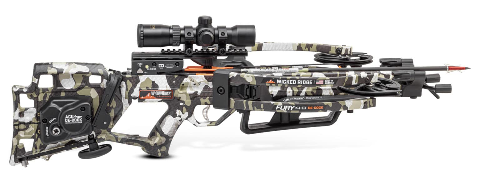 Equipped with the revolutionary ACU draw De-Cock for safe de-cocking, D1 Trigger, and a reverse-draw crossbow design with undeniable speed and power advantages, the American-Built Fury 410 De-Cock shoots 410 FPS and is a super short crossbow at 29-inches long and delivers performance you’ve never seen before at its price-point around $1,000.