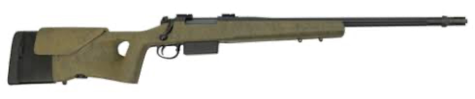 Stock: Thumb-hole composite, fully adjustable LOP and cheek-piece, full length aluminum bedding block