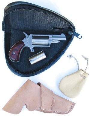 The NAA Revolver Mini is a “cap & ball” black powder revolver with a stainless steel barrel and cylinder, brass frame, and walnut grips. As with all NAA Mini-Revolvers the hammer need not rest on an empty chamber. Using the same cylinder as the .22 LR, this 22 Mag model can use all of the available accessories that are available for it.