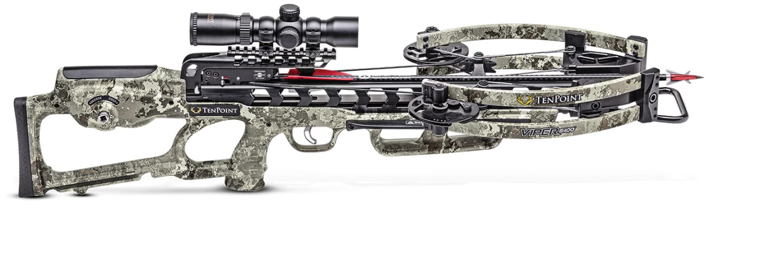 The shortest forward-draw hunting crossbow we have ever produced, the light-weight Viper S400 measures just 32-inches in length yet delivers speeds up to 400 FPS and is sold as a crossbow package. Featuring the NEW revolutionary ACU slide silent cocking and safe de-cocking system, this ultra-compact hunting crossbow measures an ultra-narrow 7.2-inches wide and features a 3.5 pound, 2-stage, zero-creep S1 trigger that delivers our most crisp, consistent break ever. If you are looking for the ultimate hunting crossbow package, look no further than the Viper S400.